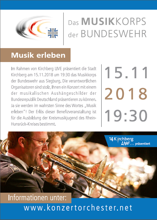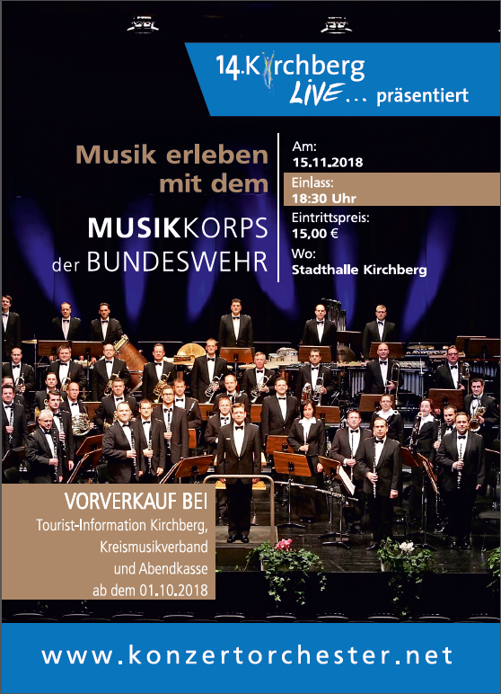 2. Benefizkonzert Musikkorps der Bundeswehr am 15.11.2018 um 19:30 Uhr in Kirchberg (Kartenvorbestellung siehe unten auf dieser Seite)